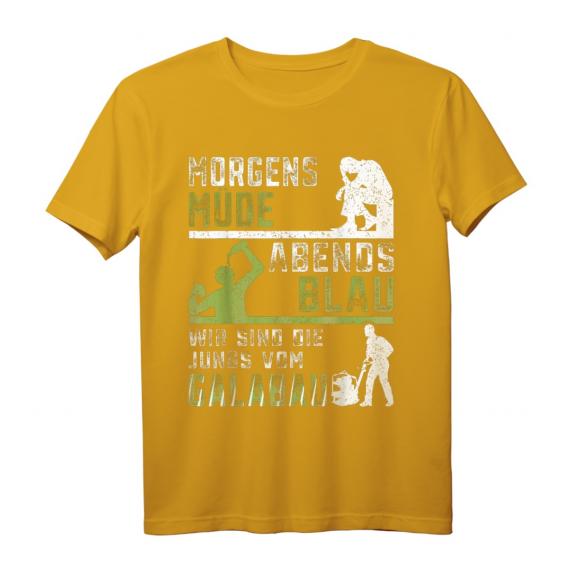 Du kennst das Gefühl: Frühmorgens noch müde, abends dann stolz und erfüllt, weil du deinen Beitrag im Garten- und Landschaftsbau leistest. Mit dem Morgens müde abends blau wir sind die Jungs vom Galabau T-Shirt hast du jetzt die perfekte Garten- und Landschaftsbau Kleidung, die nicht nur praktisch ist, sondern auch deine Teamstärke zeigt.
