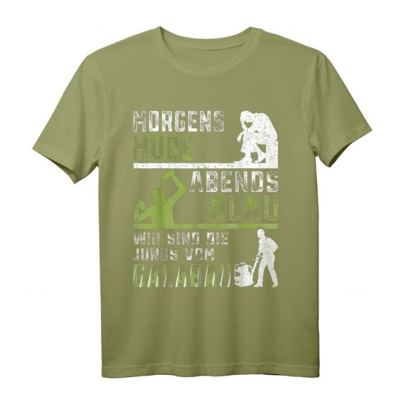 Dank seines stylischen Designs und der Botschaft „Morgens müde abends blau wir sind die Jungs vom Galabau“ wird dein Team sofort sichtbar und erkenntlich. Es ist das perfekte Garten-Team Kleidung für alle, die im Garten- und Landschaftsbau unterwegs sind. Ob als praktisches Gartenarbeit Shirt oder als cooles Gartenbau Zubehör – dieses Landschaftsbauer T-Shirt hebt eure Identität hervor und schafft Zusammenhalt.